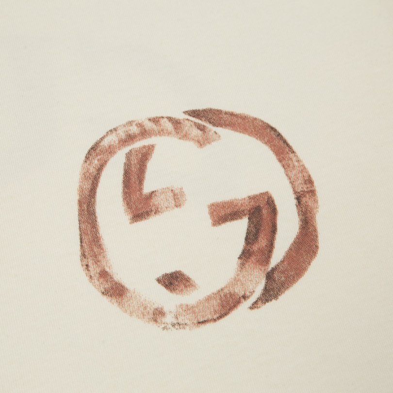 GG T-shirt Distressed Logo Beige